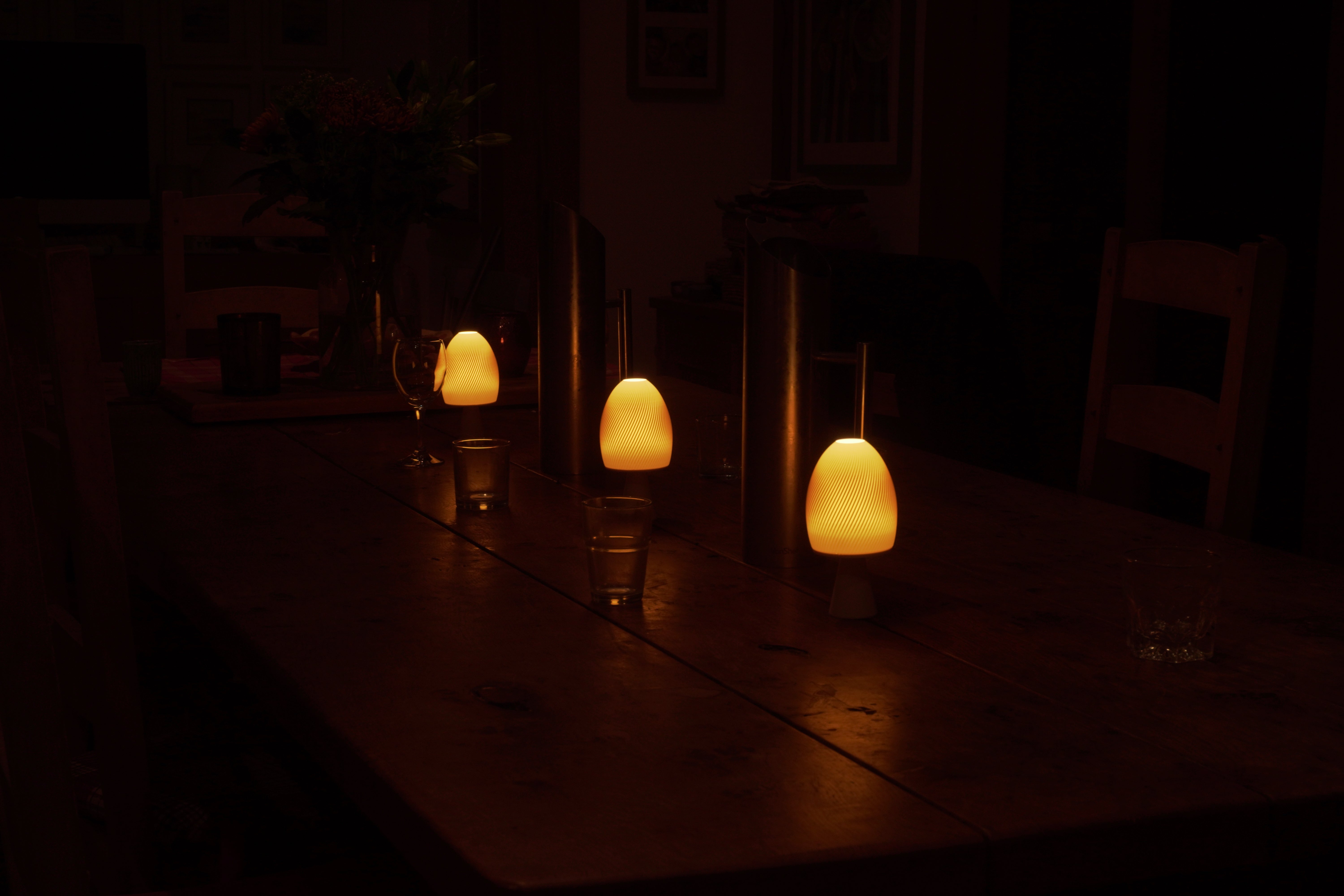 Our smallest design, a soft mushroom shape with a warm, sculptural glow. The perfect table companion for smaller spaces.