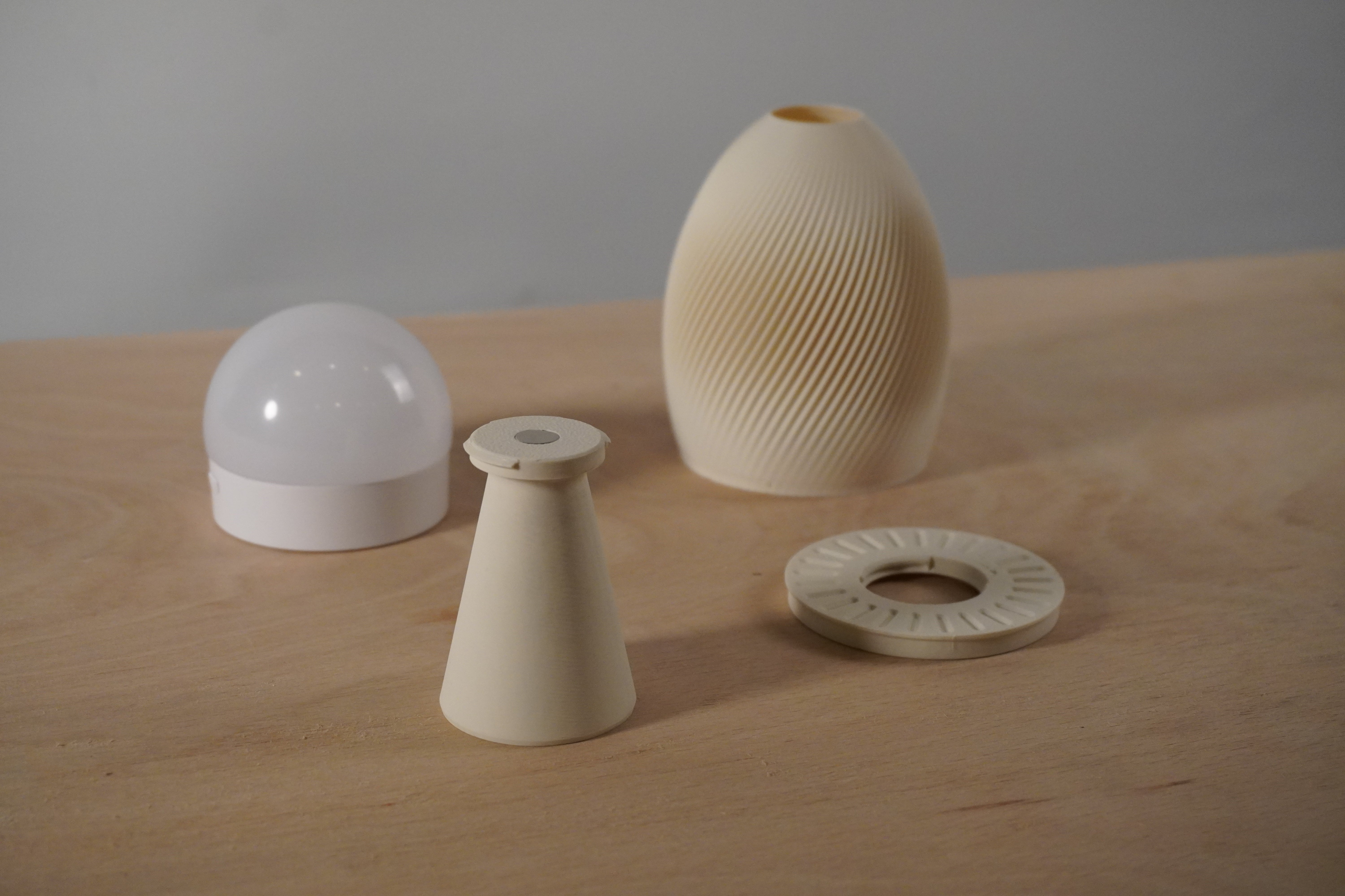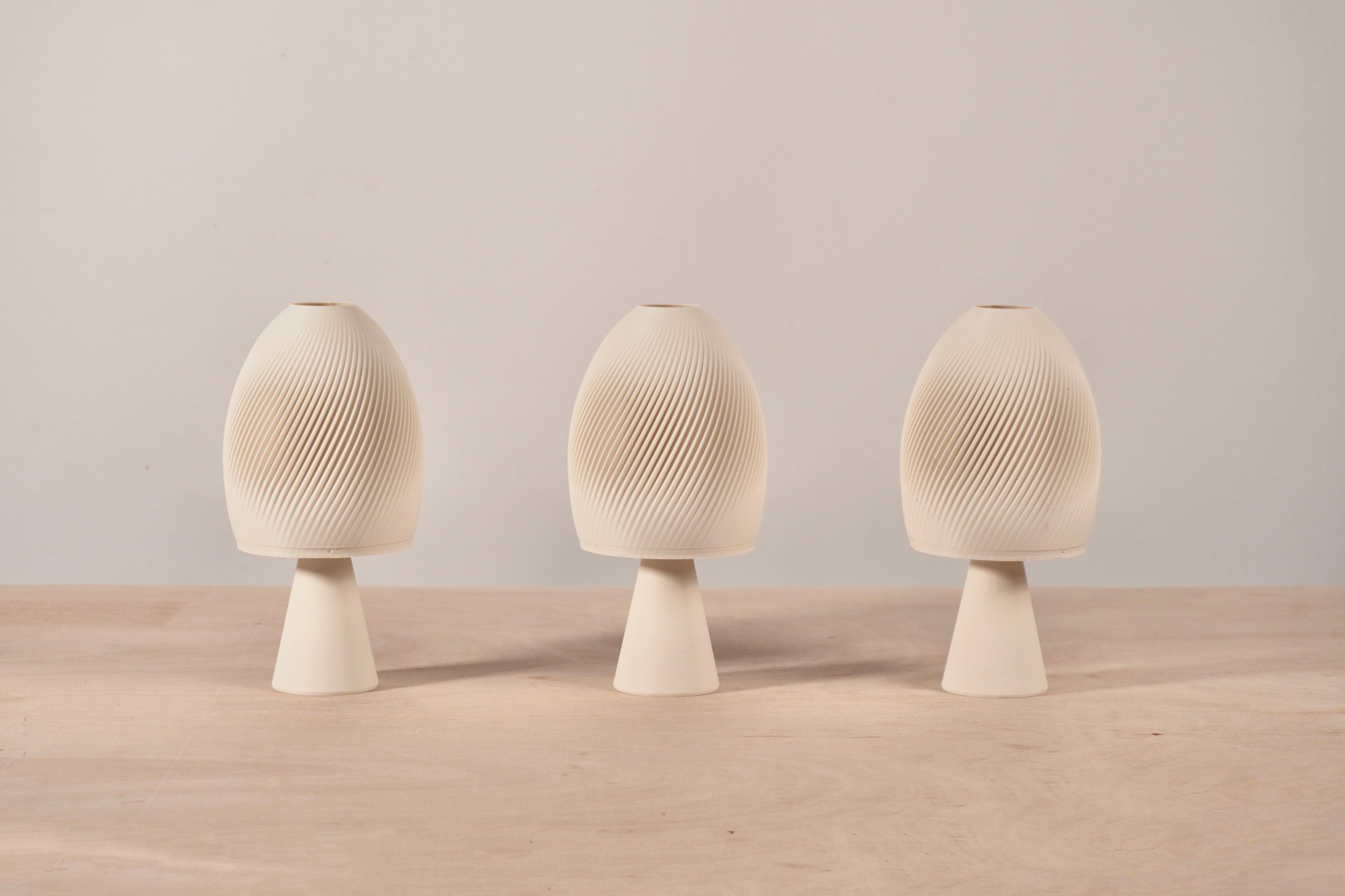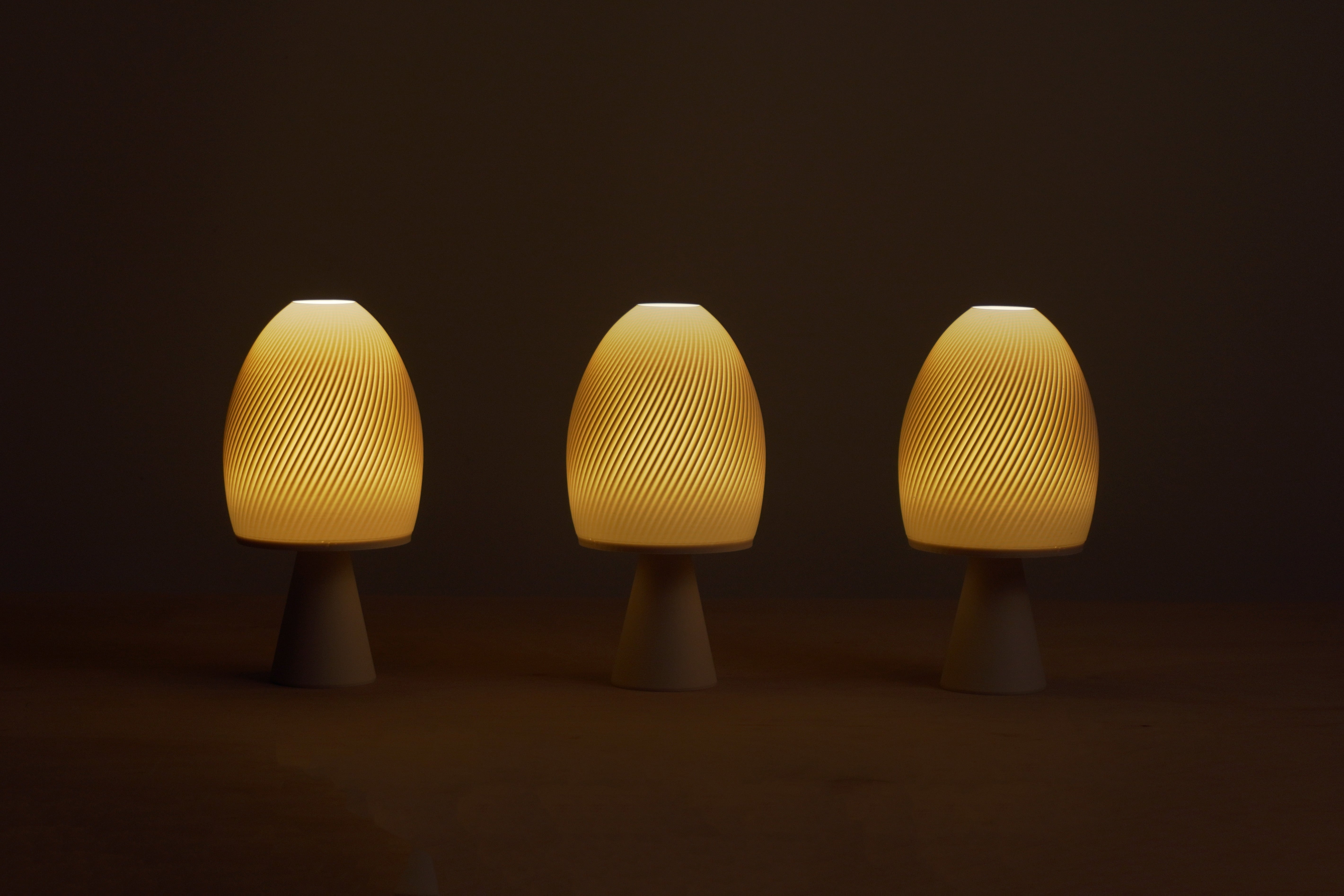 Each lamp is 3D-printed in the UK using recycled PLA and features a solid weighted base made from encapsulated recycled steel punchings, giving it the perfect balance of stability and charm.